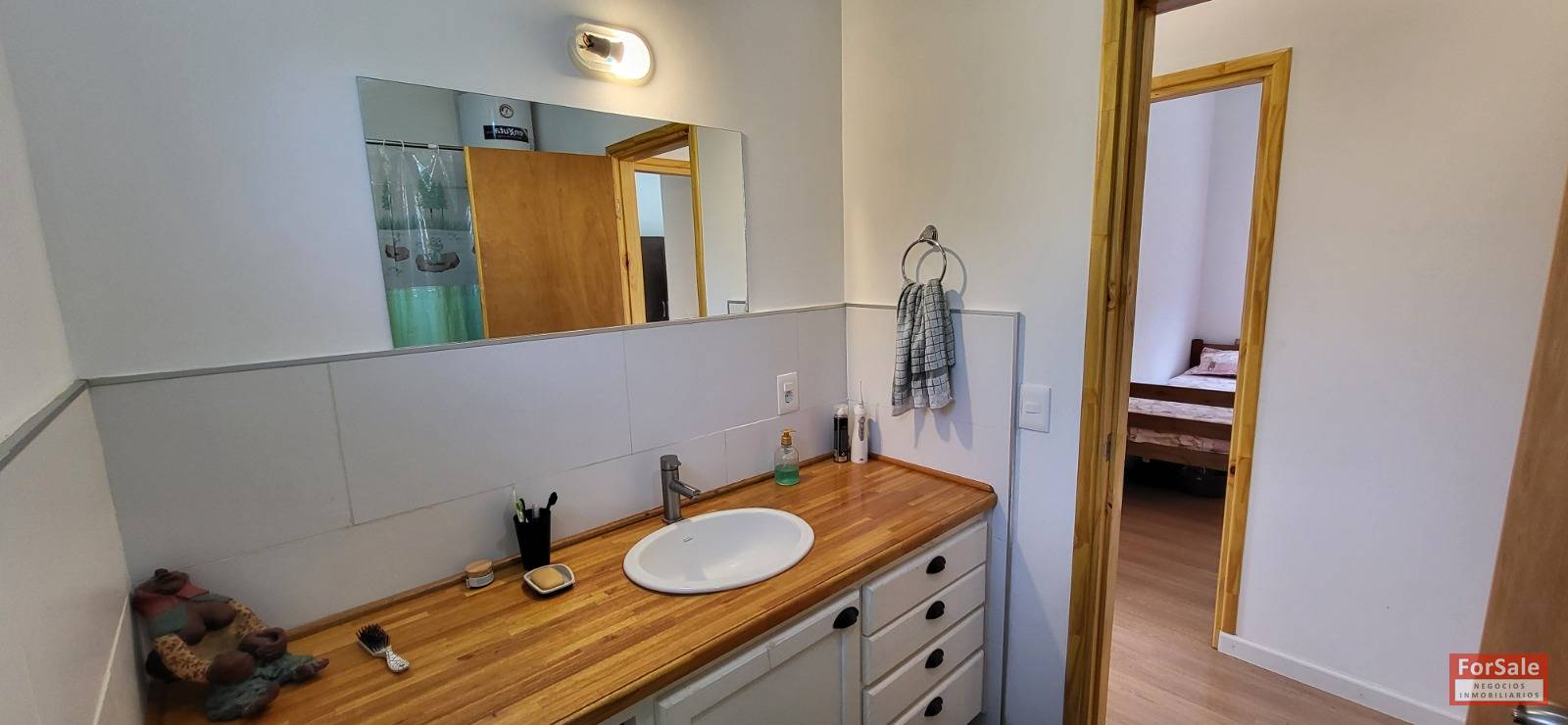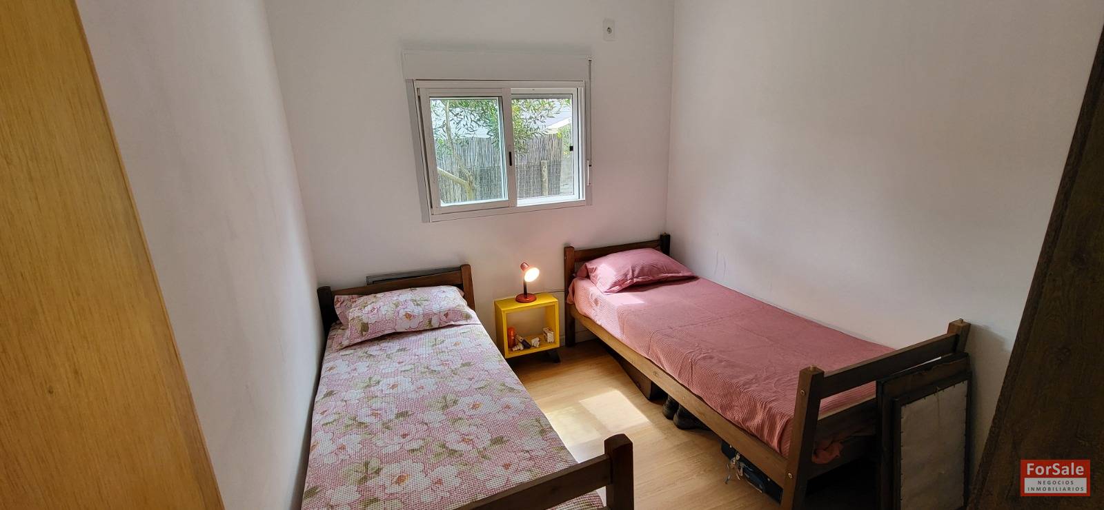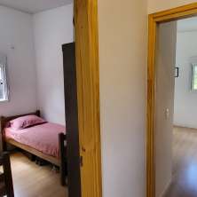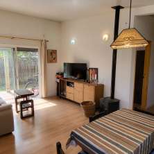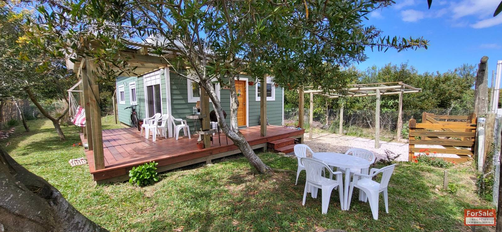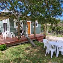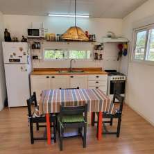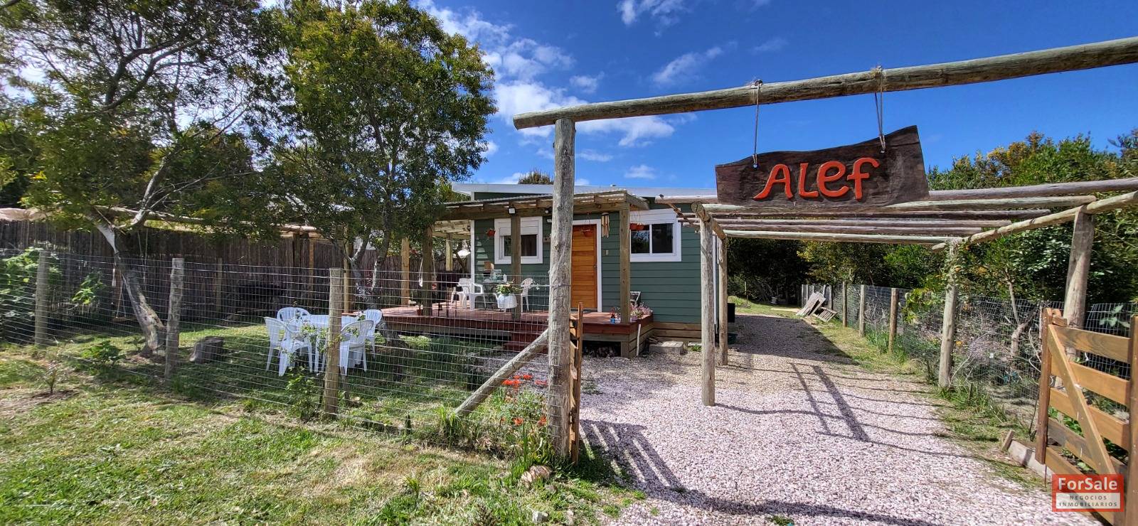 Its features are a living room with a fireplace, kitchen-dining room, two bedrooms and a full social bathroom. Both in front and on the side, it has a solid and large covered deck.