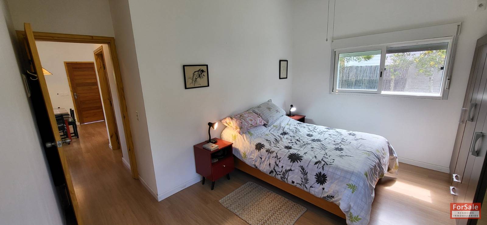Its structure is made up of double steel framing walls, with fiber cement exteriors and plaster interiors, isopanel roof, double aluminum glass openings with screens and blinds, floating floors and ceramic floor in bathroom.